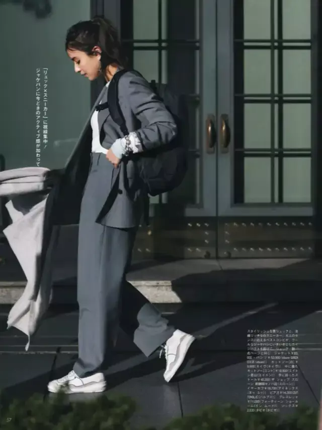 或者遴荐经典神态的西服套装,内搭白 T 恤,加上一对板鞋,这么的穿衣气魄既经管了穿衣打扮的拘泥问题,又显得通勤精致。