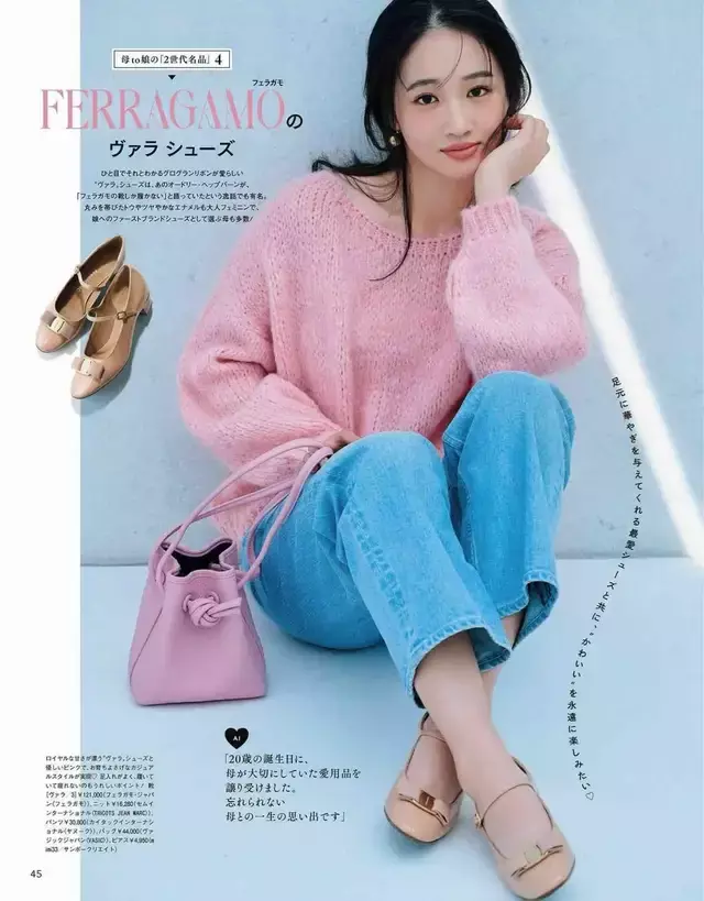 好比上头这孑然,粉色的毛衣搭配上同色系的小方包,下装是一条蓝色的牛仔九分裤,脚踩一对地面色系的玛丽珍鞋,这么的打扮密致又不张扬,优雅自带力量感,穿去上班、逛街、约聚、外出旅游、拍照都很出片。