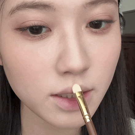 这一步主若是用柔软的粉状居品打造出唇色当然漫开的嗅觉,大约在污秽唇线的同期,进一步保密唇周暗千里,为后续饱胀唇中的水光色作念准备。