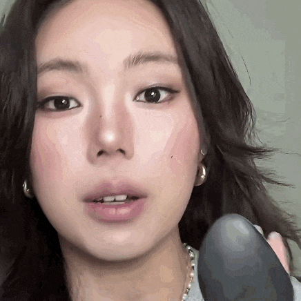 选一块偏哑光的粉状腮红(和唇釉同色的氛围色哦!),用中号的眼影刷蘸取,点涂在唇峰。